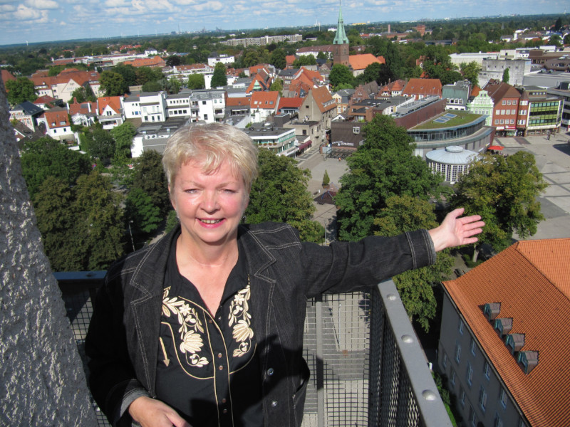 Freut sich, endlich wieder Besucher auf dem Wasserturm begrüßen zu dürfen: dwfg-Mitarbeiterin Irmtraud Egert. Foto: dwfg