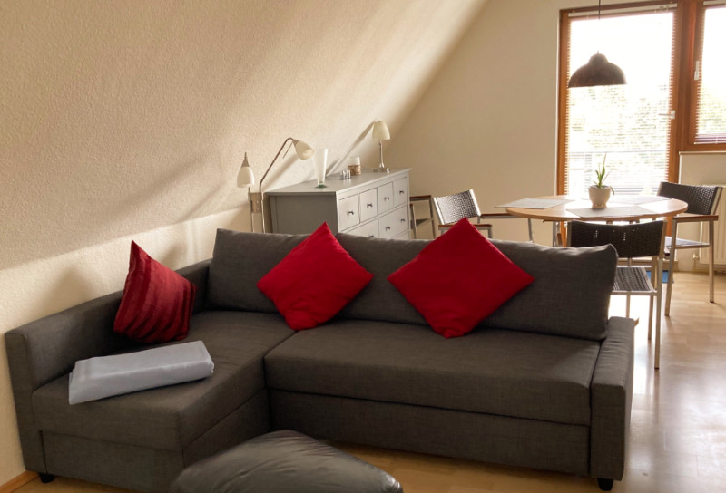 Die 60qm große Ferienwohnung mit Balkon befindet sich zentrumsnah in verkehrsberuhigter Lage, 2. Etage mit Türsprechanlage und bietet Schlafgelegenheiten für bis zu 4 Personen. Ein Parkplatz steht zur Verfügung.