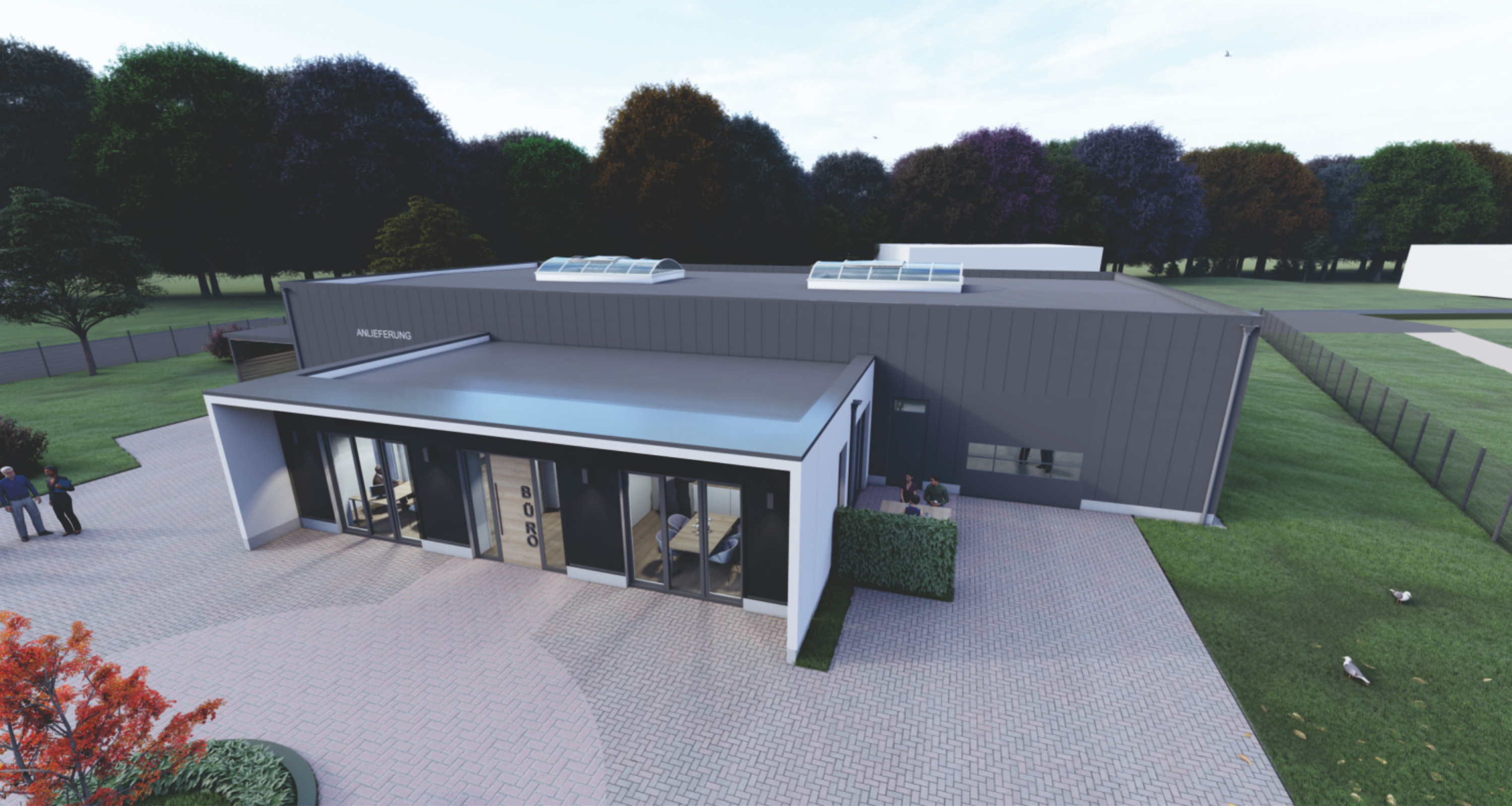 So sollen Produktionshalle und Bürogebäude bald aussehen. Foto: Gravi-tec.